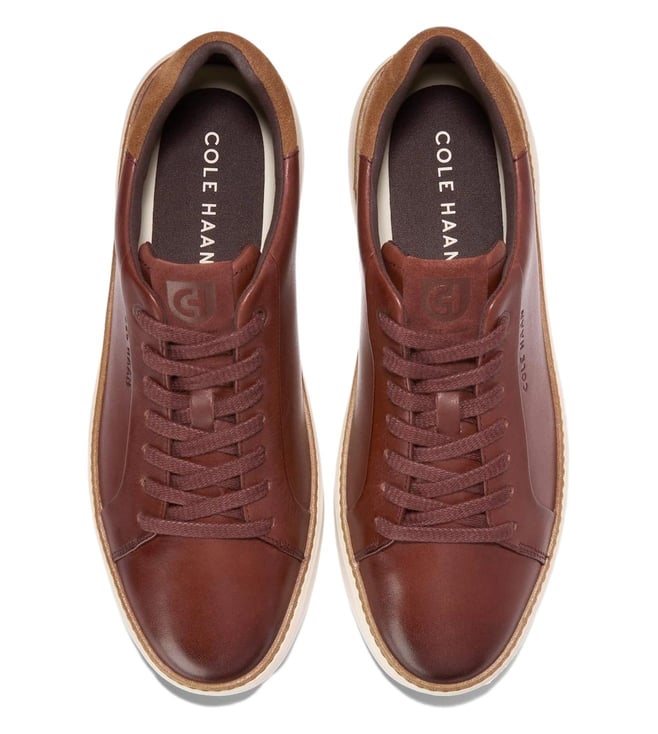 Step up your style game with the Cole Haan men's GP TOPSPIN brown sneakers. Crafted with premium materials, these sneakers offer a perfect blend of comfort and sophistication. The sleek brown design adds a touch of elegance to any outfit, making them versatile for both casual and dressy occasions. With a cushioned insole and durable outsole, these sneakers provide all-day comfort and support. Elevate your footwear collection with these stylish and functional sneakers that are sure to turn heads wherever you go.