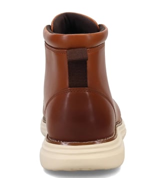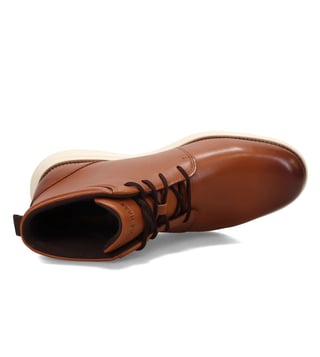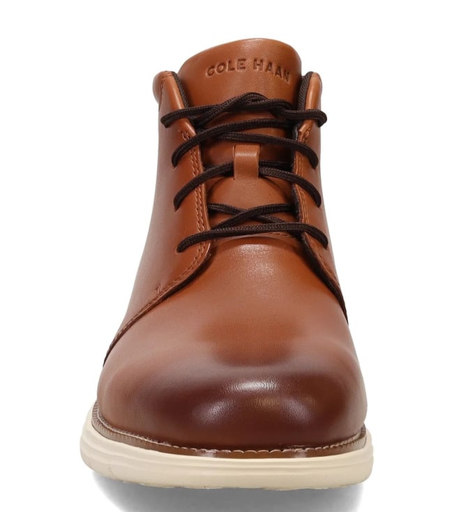 Make a statement with these Cole Haan chukka boots. Crafted from smooth leather, these stylish boots feature a lace-up closure that ensures a secure fit. The combination of textile and leather linings creates an abrasion-free environment, while the lightly cushioned insole and padded footbed provide comfort for all-day wear. Enhanced with lightweight Grand O.S. comfort technology, these boots also feature a rubber outsole for added traction, making them both practical and stylish for any occasion.