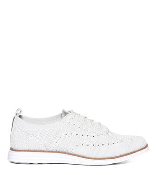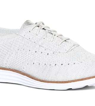 Sure to delight the minimalist in you, this pair of grey sneakers from the Original Grand Stitchlite Wingtip collection by Cole Haan is a melange of style and class. The textile upper assures comfort, while the slip-resistant EVA sole guarantees traction irrespective of the surface. The round-shaped tip accentuates the overall appeal. The Zero Grand technology ensures unrestricted movement. Mix and match this pair with a shirt dress to strut the streets in style.