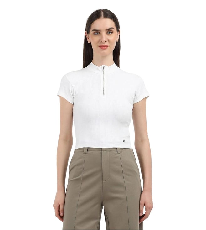 White Slim Fit Cotton Half-Zip Neck Top
