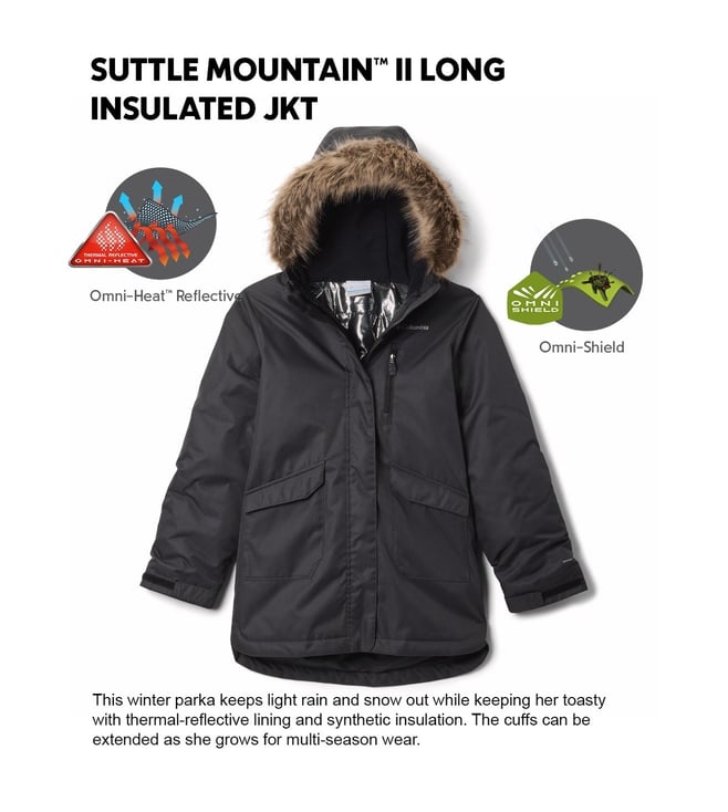 Columbia Girls Black OmniHeat Reflective Suttle Mountain II Insulated Parka Jacket