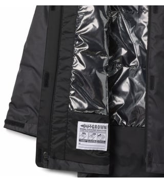 Omni-Heat lining reflects body heat to retain warmth. Water-resistant fabric sheds moisture and faux down insulation provides lightweight warmth. The attached adjustable storm hood seals out the elements and removable faux fur allows for customized styling.