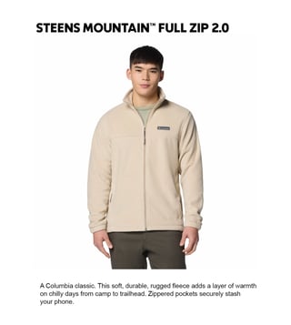 A Columbia classic. This soft, durable, rugged fleece adds a layer of warmth on chilly days from camp to trailhead. Zippered pockets securely stash your phone. Zippered hand pockets secure valuables, Adjustable hem with interior drawcord for a custom fit, Uses Everyday, Imported.