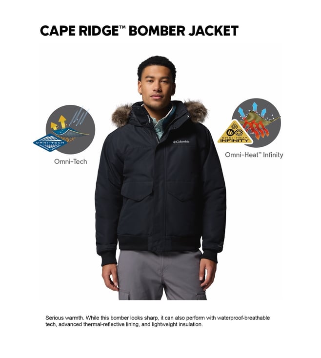 Columbia Men Black OmniHeat Infinity Cape Ridge Bomber Down Jacket