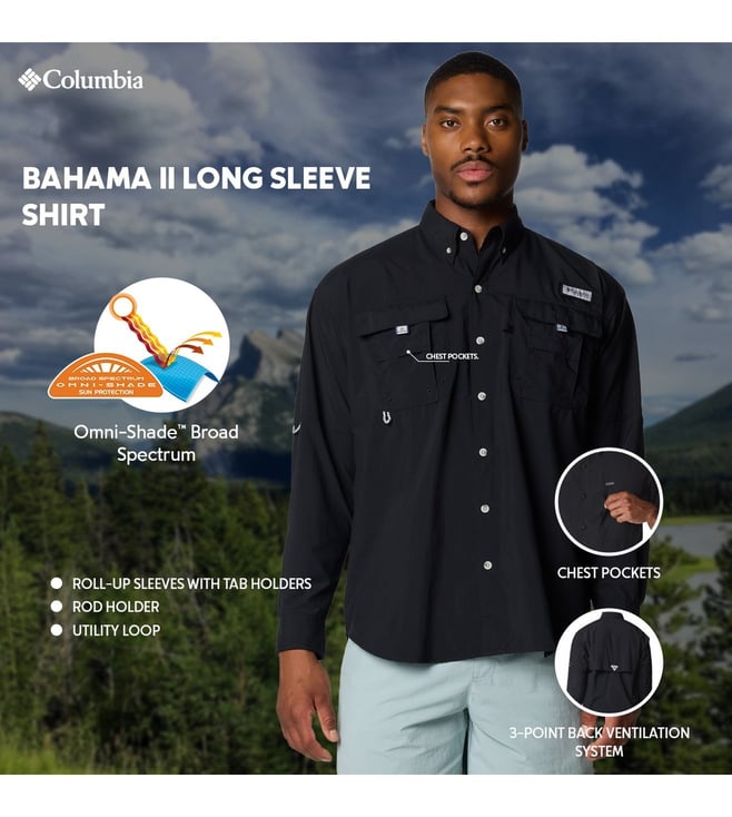 COLUMBIA Mens Black Omni-Shade Bahama II Long Sleeve Shirt