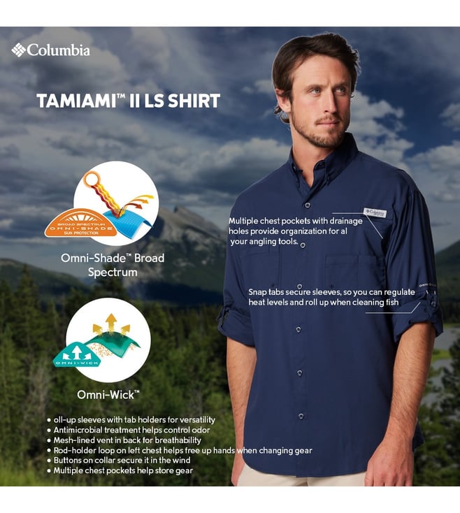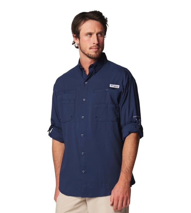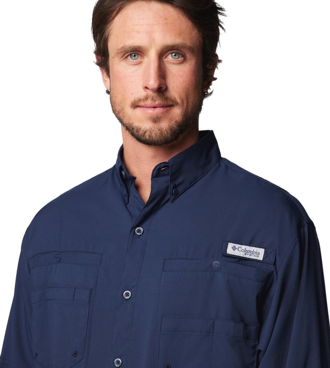 Columbia Mens Navy Blue Omni-Wick Tamiami II Long Sleeve Shirt