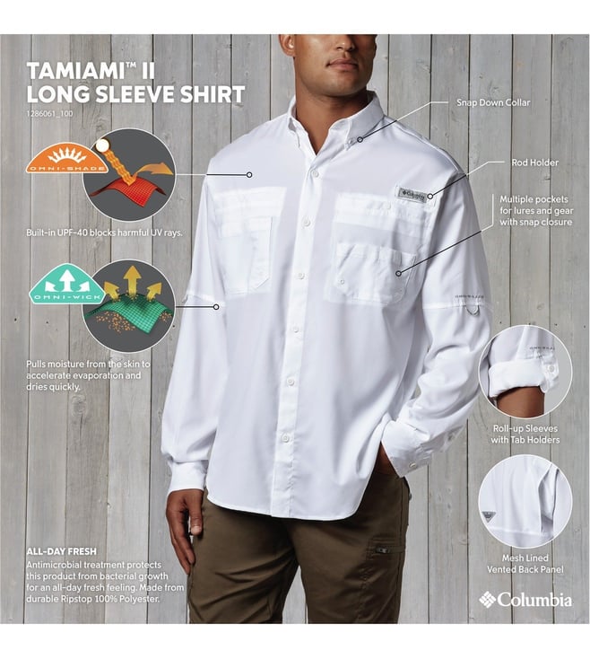 Mens White Omni-Wick Tamiami II Long Sleeve Shirt