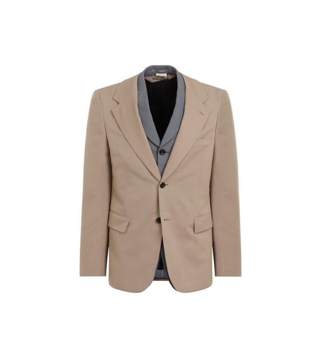 Elevate your style with the Comme Des Garcons Beige Regular Fit Blazer. Comme des garcons homme plus gray and beige layered wool jacket. Gray and beige wool, layered construction, front button fastening, long sleeves, side pockets, notched collar. Fully lined, buttoned cuffs, regular fit. Products purchased from Darveys are supported exclusively by the warranty/exchange policies of Darveys and its partner boutiques. Brand owners and their channel partners are not responsible for exchange/warranty services for items purchased through Darveys.