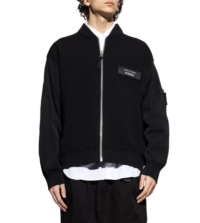 Elevate your style with the Comme Des Garcons Black Front Zip Jacket. Black front zip fastening two side slit pockets sleeve zip pocket logo patch at the chest. Products purchased from Darveys are supported exclusively by the warranty/exchange policies of Darveys and its partner boutiques. Brand owners and their channel partners are not responsible for exchange/warranty services for items purchased through Darveys.