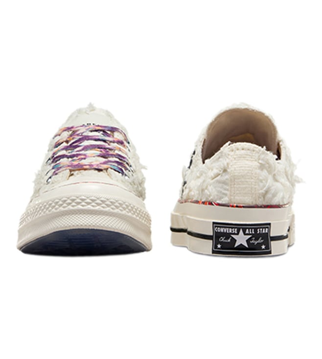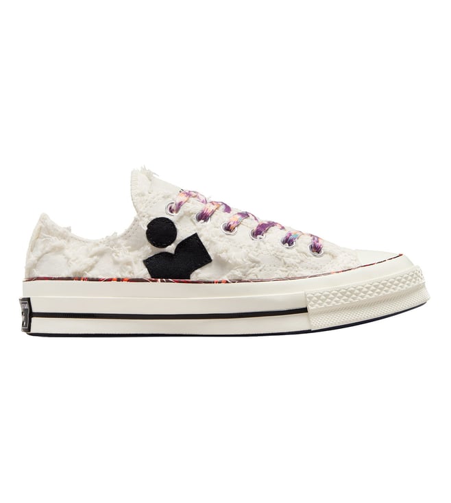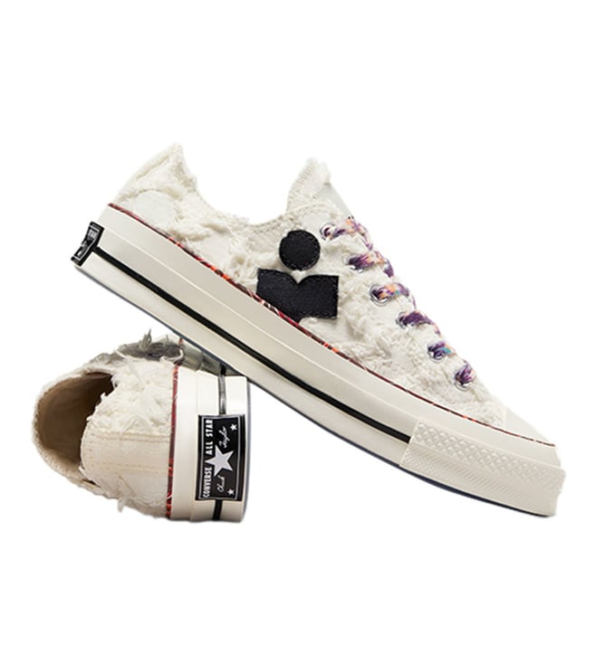 The French fashion designer puts her effortlessly elegant spin on the premium Chuck 70. Blending effortless luxury style cues with classic Converse details, the limited-edition design captures the essence of Isabel Marant¿s laid back but elevated aesthetic. Sophisticated materials, raw edge overlays and vibrant swirls of color create a distinctive carefree vibe.