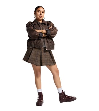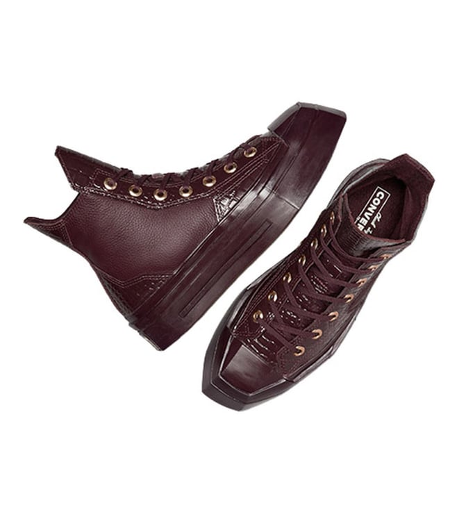 Converse Women's Chuck 70 De Luxe Squared Leather High Top Brown Sneakers