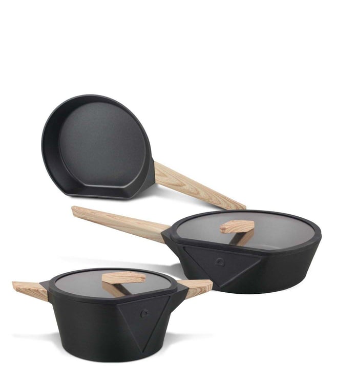 Black Cast Aluminum Non-Stick Fry Pan, Casserole Pan & Saute Pan with Glass Lid Combo