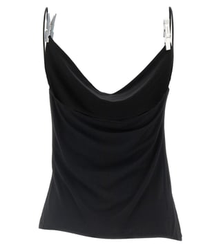 The Coperni Black Draped Washing Clip Gala Top is a stunning blend of elegance and modernity, crafted for the discerning woman. Its regular fit gracefully contours the body, while the unique draped design adds a touch of avant-garde flair. Made from a luxurious blend of 95% polyester and 5% elastane, it offers both comfort and a sleek silhouette. The top features a sophisticated closure, ensuring a seamless finish. Perfect for any gala, this top is a statement piece that exudes confidence and style.