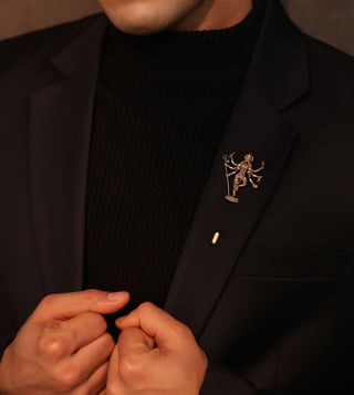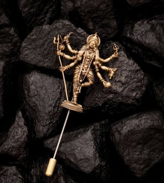 Channel the divine strength of Goddess Durga with the Shakti Aura Lapel Pin. Exquisitely crafted with intricate details of her multiple arms holding sacred weapons, this piece radiates power and protection. Lightweight and versatile, it is designed to adorn coats and jackets, making it a perfect accessory for those who value tradition infused with modern elegance. Let this lapel pin be a symbol of courage, resilience, and spiritual grace in your attire.
