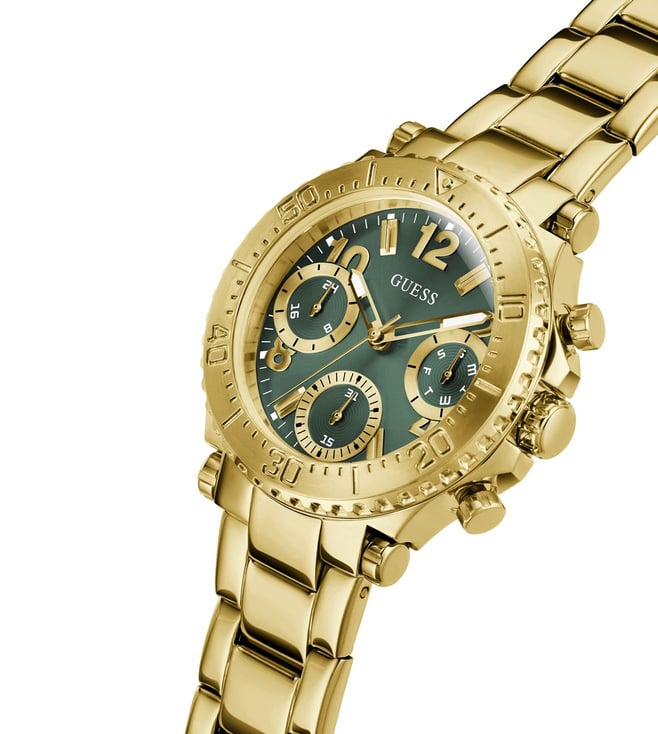 Introducing the Guess Cosmic Women Analog Watch, featuring a 36mm size and striking green dial. Perfect for any fashion-forward individual, this timepiece combines functionality with style. With its precise movement and durable design, this watch is sure to impress. Elevate your look with the Guess Cosmic Watch.