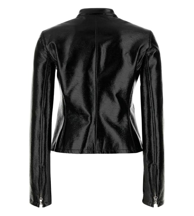 Unleash your inner rebel with this sleek black biker jacket, crafted for the modern woman. Its solid pattern and long sleeves exude timeless cool, while the band collar adds a touch of edge. Made from a blend of 88% cotton, 10% polyurethane, and 2% elastane, it offers comfort and a perfect fit. Products purchased from Darveys are supported exclusively by the warranty/exchange policies of Darveys and its partner boutiques. Brand owners and their channel partners are not responsible for exchange/warranty services for items purchased through Darveys.