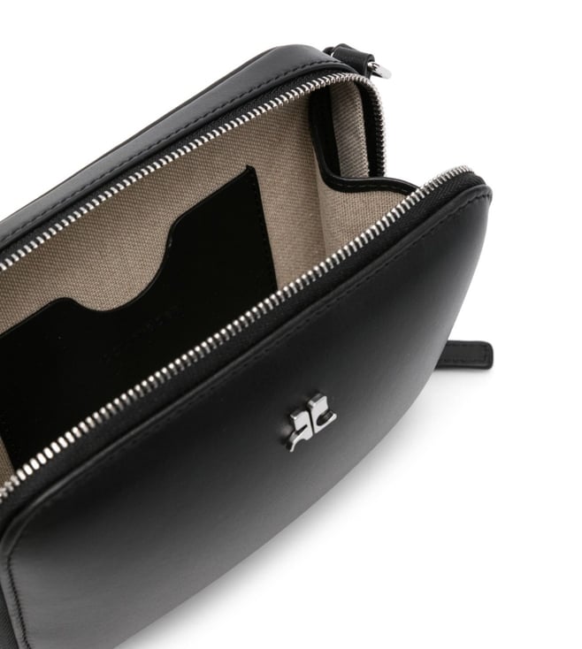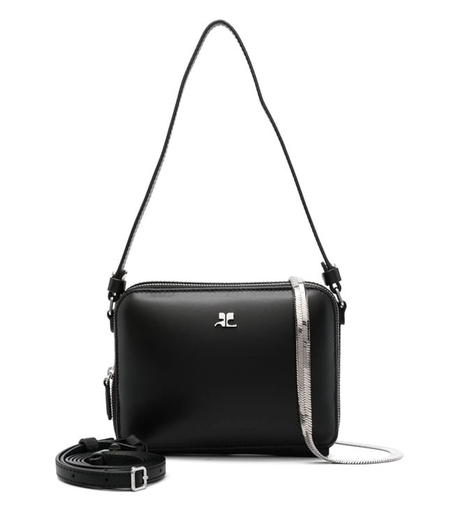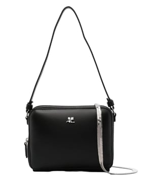 Expand the collection of your accessories in a trendy way with this bag from Courreges. Black leathersmooth grainall-around zip fasteningsingle herringbone chain-link top handleadjustable detachable shoulder strapsilver-tone ac plaquemain compartmentcotton lining