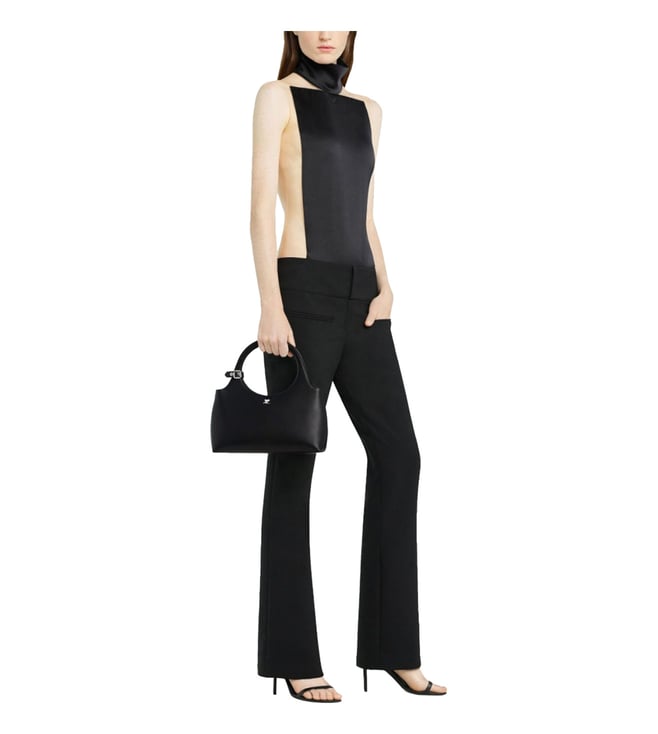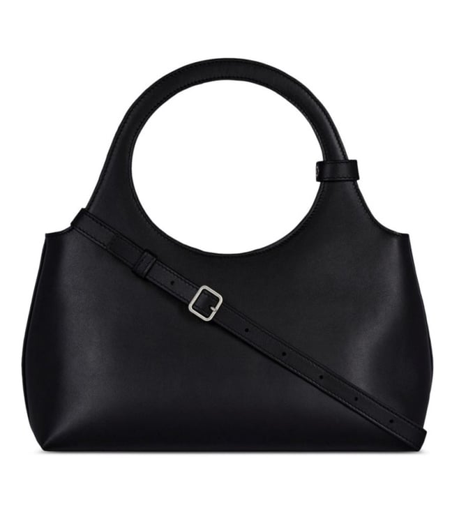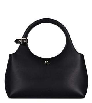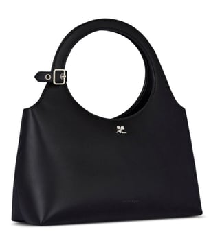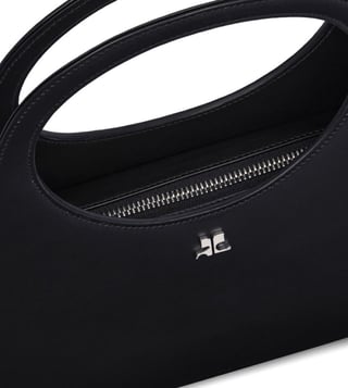 Holy day smooth leather. Zipped closure and metallic ac logo. Embossed courrges logo on front. Buckle detail on handles and interior pocket. Adjustable and removable shoulder strap.
