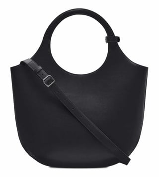 The holy midi bag in black is a sophisticated example of modern elegance. Crafted from premium, it is embellished with a silver-tone logo plaque for a luxurious touch. Featuring two handles for classic portability and an adjustable, removable sho