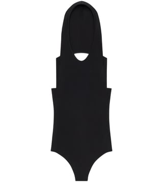 Unveil a world of mystique with the Courr¿ges Black Illusion Hooded Bodysuit. This avant-garde piece, crafted from a sleek blend of 89% polyester and 11% polyurethane, offers a regular fit that contours elegantly to the body. The enigmatic black hue enhances its allure, while the hood adds a touch of drama. Designed for the modern woman, this bodysuit seamlessly combines style and comfort, making it a statement piece for any occasion. Embrace the illusion and redefine sophistication.