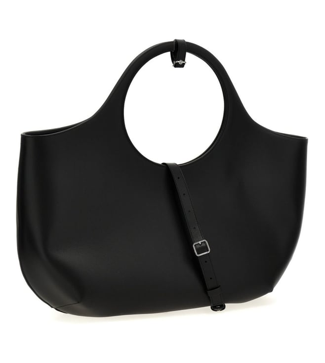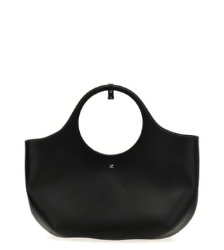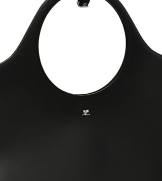 Expand the collection of your accessories in a trendy way with this bag from Courreges. Maxi holy leather handbag with front metal logo, magnetic closure, double handle, strap detail, inner zip pocket, adjustable and removable shoulder strap.