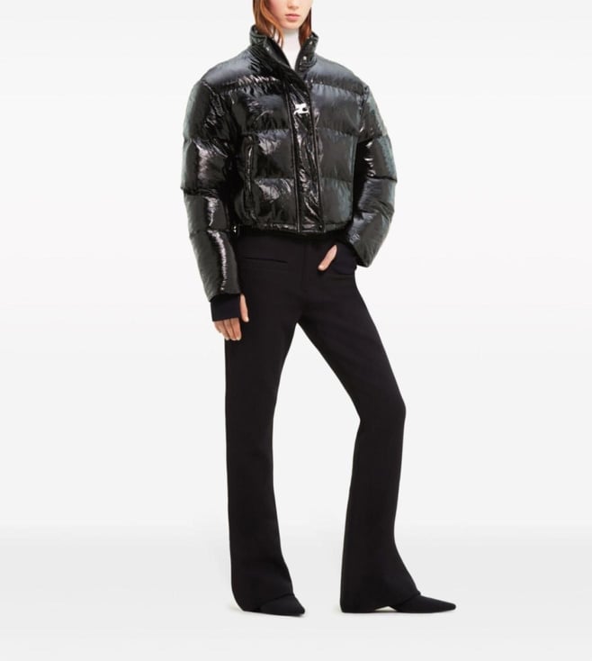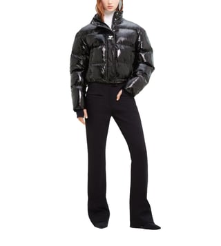 The Courr¿ges Black Jacket is a sleek embodiment of futuristic elegance, merging classic sophistication with avant-garde flair. Crafted from luxurious materials, its tailored silhouette hugs the body, exuding confidence and poise. The jacket features sharp lines and minimalist detailing, with a subtle sheen that catches the light, adding a touch of mystery. Its structured shoulders and precise cut create a powerful presence, while the understated design allows for versatile styling, making it a timeless wardrobe staple.