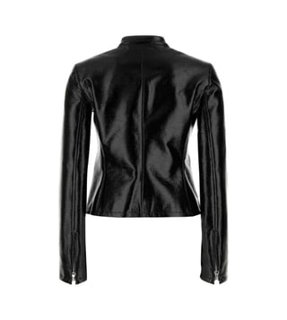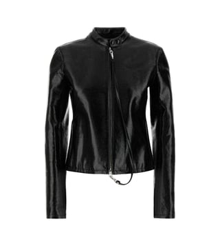 The Courr¿ges Black Jacket is a sleek embodiment of futuristic elegance, merging classic sophistication with avant-garde flair. Crafted from luxurious materials, its tailored silhouette hugs the body, exuding confidence and poise. The jacket features sharp lines and minimalist detailing, with a subtle sheen that catches the light, adding a touch of mystery. Its structured shoulders and precise cut create a powerful presence, while the understated design allows for versatile styling, making it a timeless wardrobe staple.