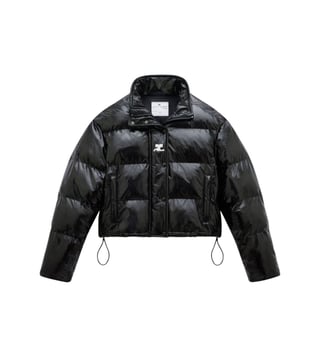 The Courr¿ges Black Jacket is a sleek embodiment of futuristic elegance, merging classic sophistication with avant-garde flair. Crafted from luxurious materials, its tailored silhouette hugs the body, exuding confidence and poise. The jacket features sharp lines and minimalist detailing, with a subtle sheen that catches the light, adding a touch of mystery. Its structured shoulders and precise cut create a powerful presence, while the understated design allows for versatile styling, making it a timeless wardrobe staple.