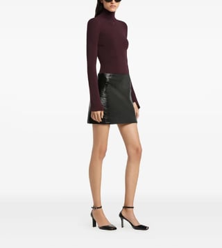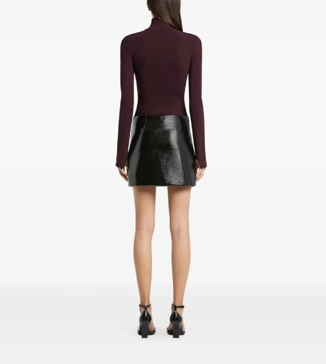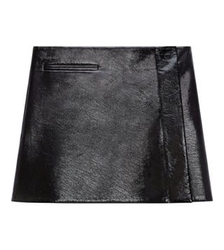 The Courreges Black Vinyl Mini Skirt is a bold statement piece, shimmering with a sleek, high-gloss finish that captures the essence of modern chic. Its deep black hue is accentuated by a subtle, abstract pattern that dances across the surface, adding depth and intrigue. Crafted from premium vinyl, this skirt offers a structured silhouette that hugs the body, exuding confidence and allure. Designed for the contemporary woman, it pairs effortlessly with both casual and upscale ensembles, making it a versatile wardrobe staple.