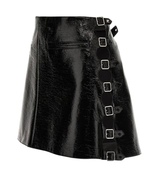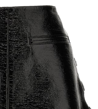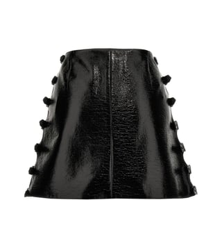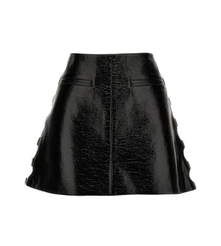 The Courreges Black Vinyl Miniskirt is a bold statement piece, exuding futuristic allure with its sleek, high-gloss finish. This striking skirt features a minimalist design, accentuated by its smooth, reflective surface that captures light with every movement. Crafted from premium vinyl, it offers a structured silhouette that hugs the body, while its mini length adds a daring edge. Perfect for the modern woman, this skirt is a versatile addition, effortlessly transitioning from day to night with avant-garde flair.