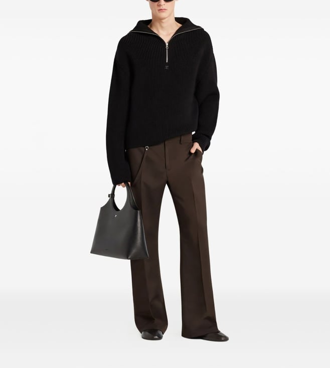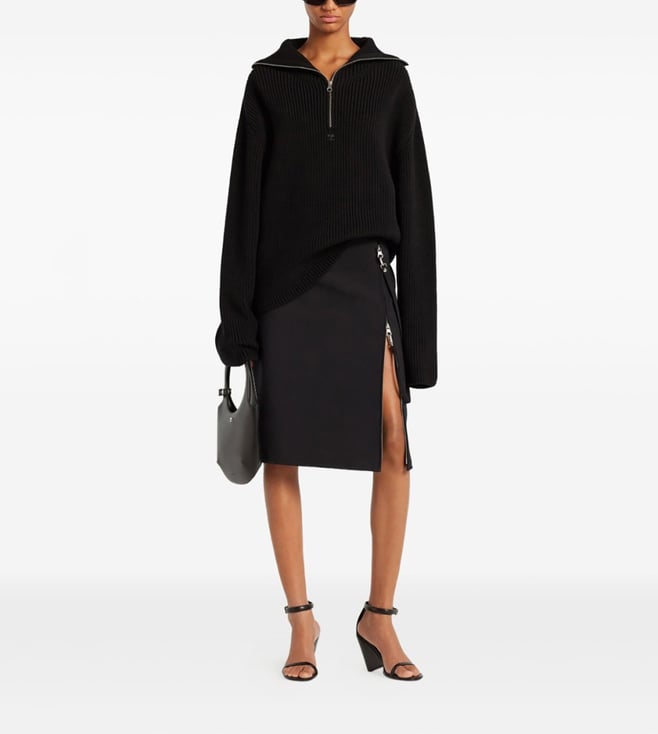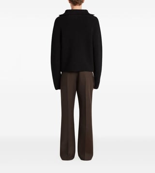 Embrace timeless elegance with this black wool sweater, crafted for the modern woman. Its solid pattern and long sleeves exude sophistication, while the shirt collar adds a touch of classic charm. Made from 100% wool, it promises warmth and comfort, making it a versatile staple for any wardrobe. Products purchased from Darveys are supported exclusively by the warranty/exchange policies of Darveys and its partner boutiques. Brand owners and their channel partners are not responsible for exchange/warranty services for items purchased through Darveys.