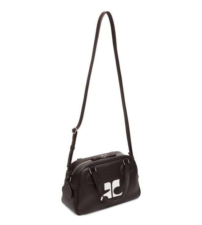 Expand the collection of your accessories in a trendy way with this bag from Courreges. Dark browntonal stitchingsilver-tone hardwareembroidered logo to the fronttwo-way zip fasteningtwo top handlesadjustable shoulder strapmain compartment
