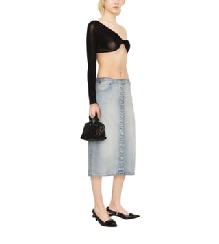 Elevate your wardrobe with the Courreges Denim Straight Fit skirt. Designed with light blue cotton washed denim logo patch to the rear d-ring findings belt loops front button fastening classic five pockets central rear vent straight hem mid-length, lining:100% coton, width: corsoeasy, these trousers combine comfort and sophistication for everyday wear.