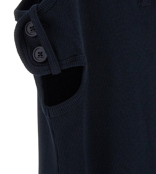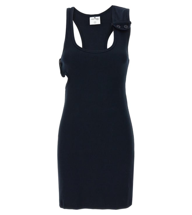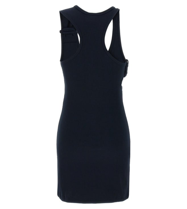 Embrace timeless elegance with this navy blue dress, a masterpiece of simplicity and style. Crafted from a luxurious blend of 98% cotton and 2% elastane, it offers a perfect balance of comfort and stretch. The solid pattern exudes sophistication, while the sleeveless design and scoop neck add a touch of modern flair. Designed for the discerning woman, this dress is your go-to for any occasion, seamlessly transitioning from day to night with effortless grace.