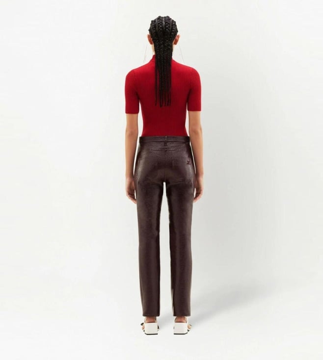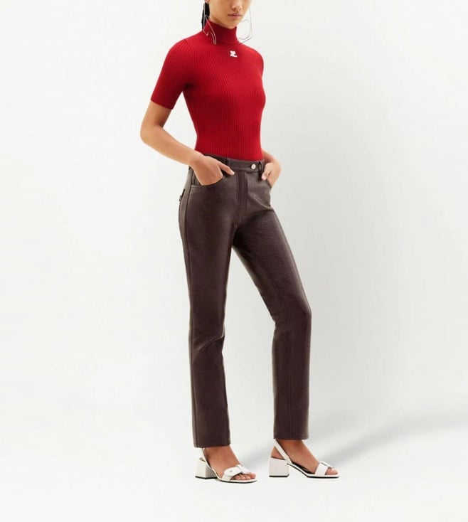 The Courreges Red Reedition Rib Knit Sweater is a striking blend of modern elegance and timeless style. Crafted from a luxurious mix of 70% viscose and 30% polyester, this sweater offers a soft, comfortable fit. Its vibrant red hue captivates, while the ribbed knit pattern adds texture and depth. Designed for women, it features a sleek closure that enhances its streamlined silhouette. Perfect for making a bold statement, this sweater effortlessly combines sophistication with contemporary flair.