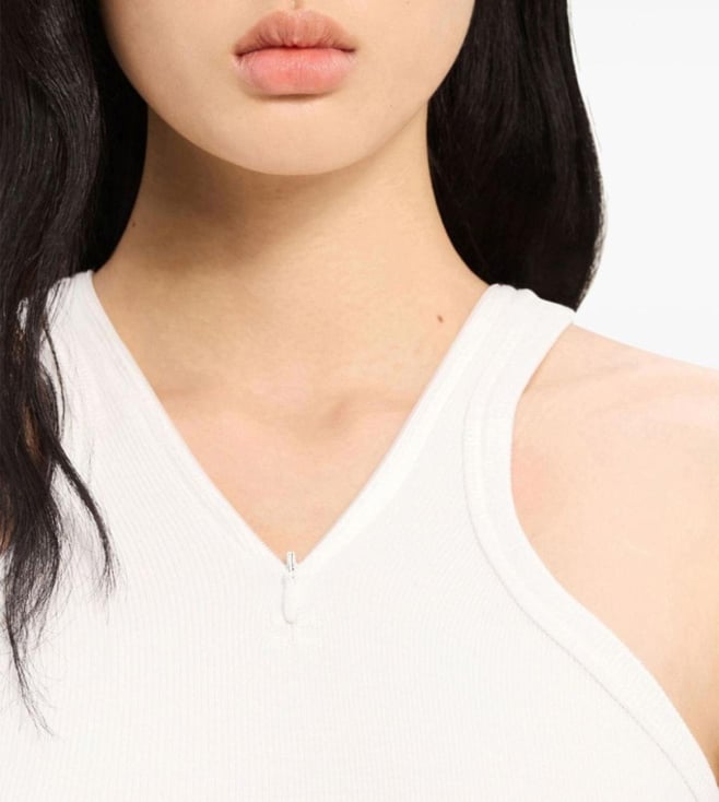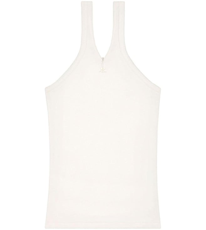 The Courreges White Criss Cross Tank Top is a chic blend of modern elegance and timeless style. Crafted from 100% cotton, this regular fit top offers a breathable and comfortable wear. Its pristine white hue is accentuated by a unique criss-cross pattern, adding a touch of sophistication to any ensemble. Designed for women who appreciate subtle yet striking details, this tank top features a seamless closure, ensuring a smooth silhouette. Perfect for both casual outings and upscale gatherings, it embodies effortless grace.