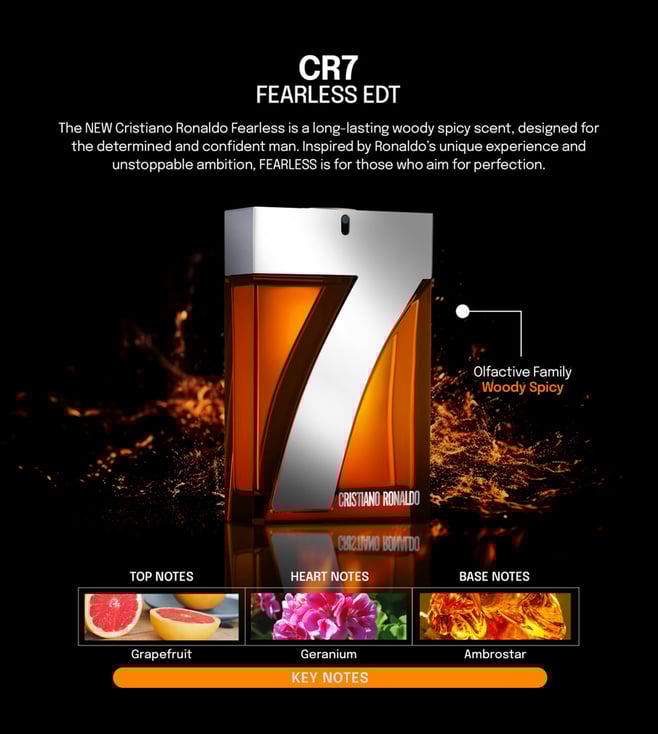 This EDT is designed for the determined and confident man. Inspired by Cristiano Ronaldo's unique journey and unstoppable ambition. A bold fragrance for those who strive for excellence and never settle for less, it embodies strength, drive, and the relentless pursuit of perfection.