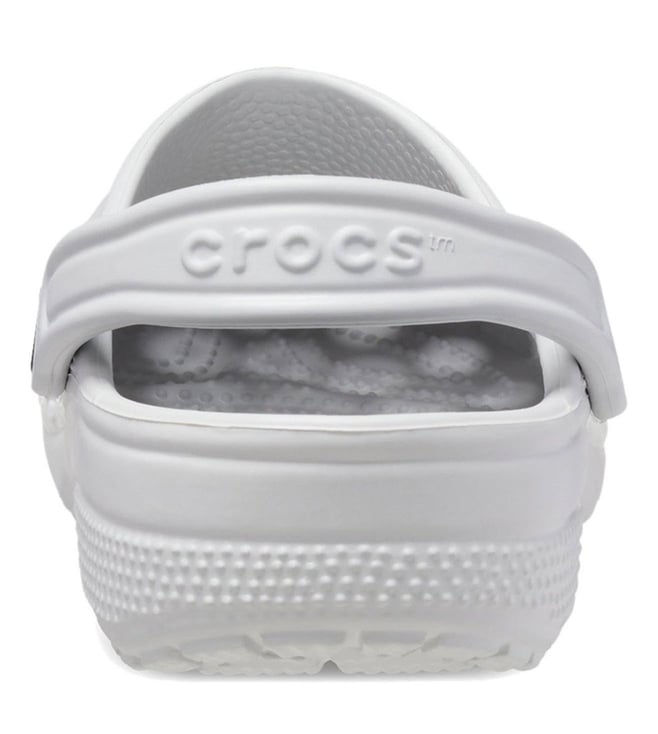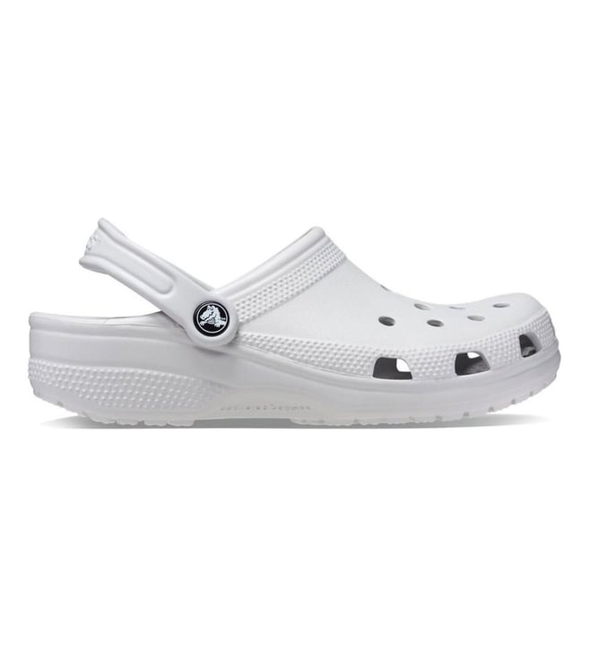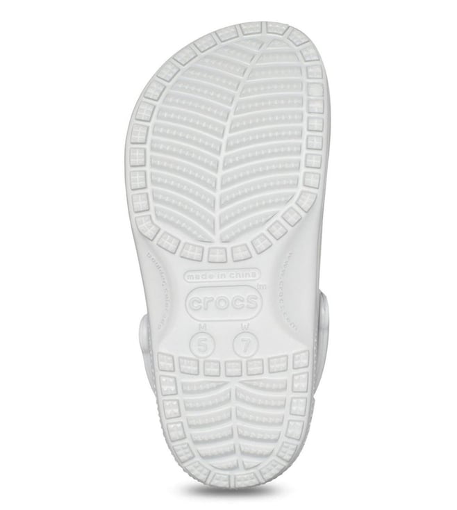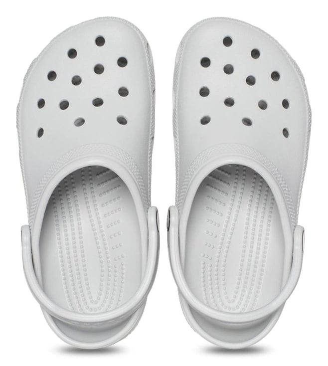 Slip into this pair of clogs from Crocs to enhance your foot comfort. It has ventilation ports that add breathability and help water and debris drain away. The heel strap of this pair offers a secured fit, while the non-marking croslite sole ensures strong traction. Its croslite upper optimally encases the foot. It is odor-resistant, easy to clean and quick to dry for your day-to-day use.