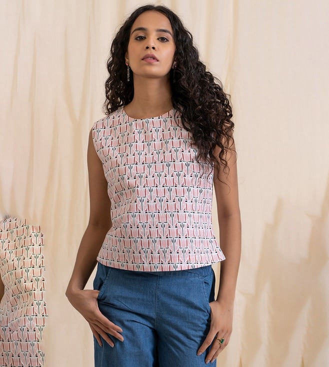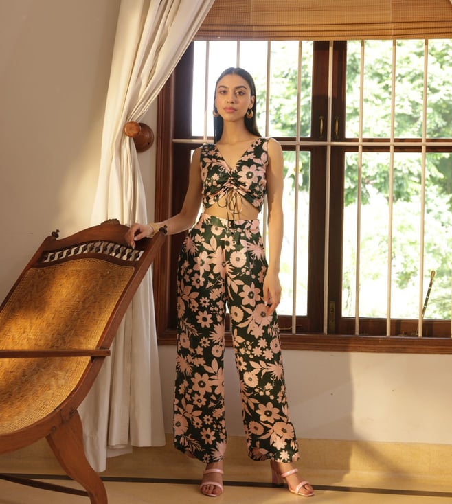 Blue Flower Print Flower Skinny Fit Crop Top