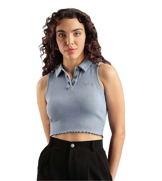 Ocean Salt Ribbed Round Neck Sleeveless Knitted Crop Top