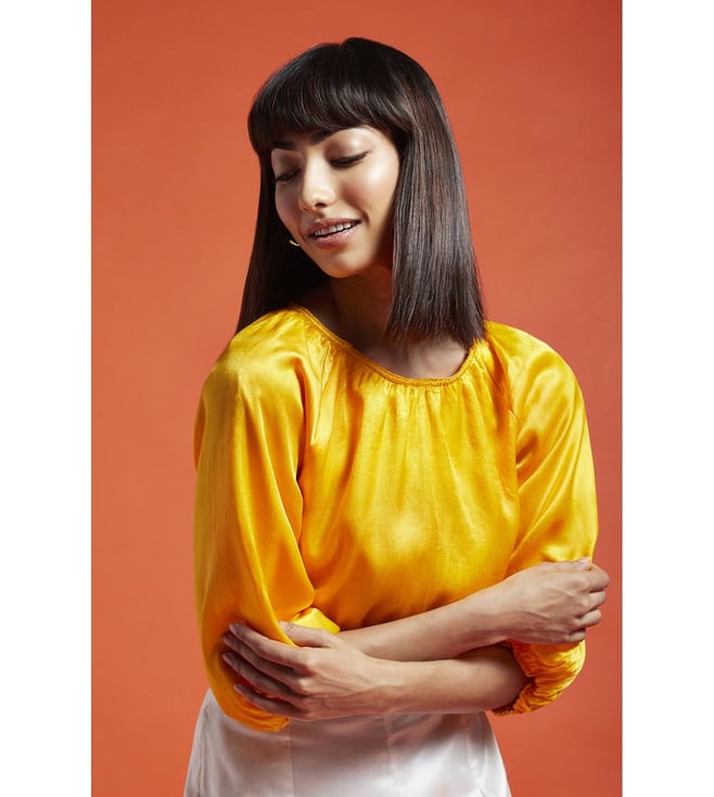 Spicy Mustard Kloe Diana Bubble Sleeve Crop Top