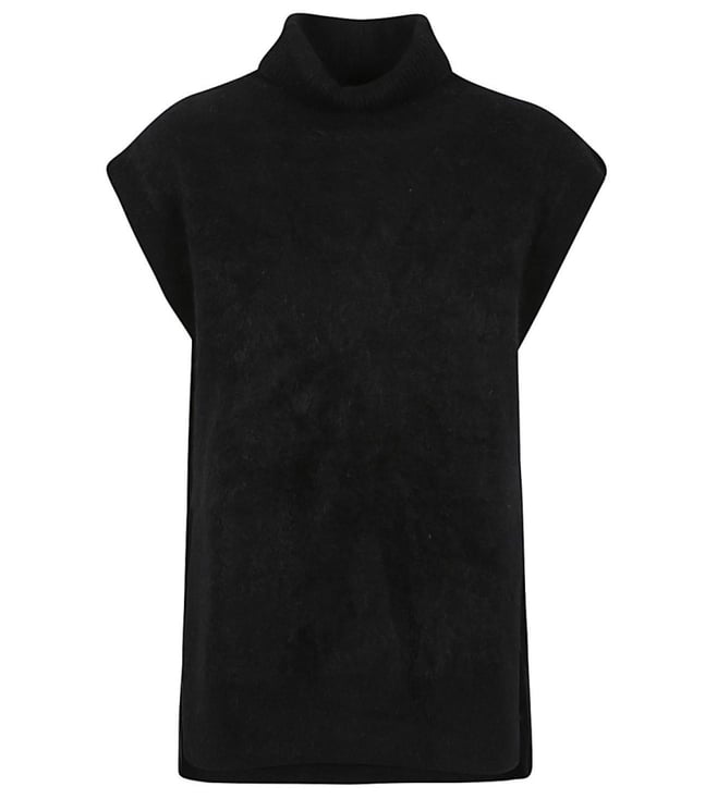 Black Wool High-Neck Vest