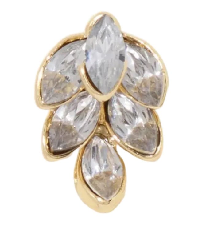Elevate your look with the dazzling elegance of our cynthia stone cluster earrings. These stunning stud earrings boast a delicate cluster of marquise cut crystals set in a luxurious gold tone setting, adding just the right amount of sparkle to any outfit. With a convenient push back fastening for pierced ears, these earrings are both stylish and comfortable to wear all day long. Make a statement with these Forever New earrings that effortlessly blend timeless sophistication with modern charm.