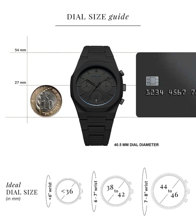 Give your wrist a classy look with this men's analog watch from D1 Milano. The black round dial is protected by a sapphire glass. The stainless steel strap comes in a black hue that further elevates the look of the timekeeper. Besides, it is completed with a deployment clasp to ensure a secure fit on the wrist.