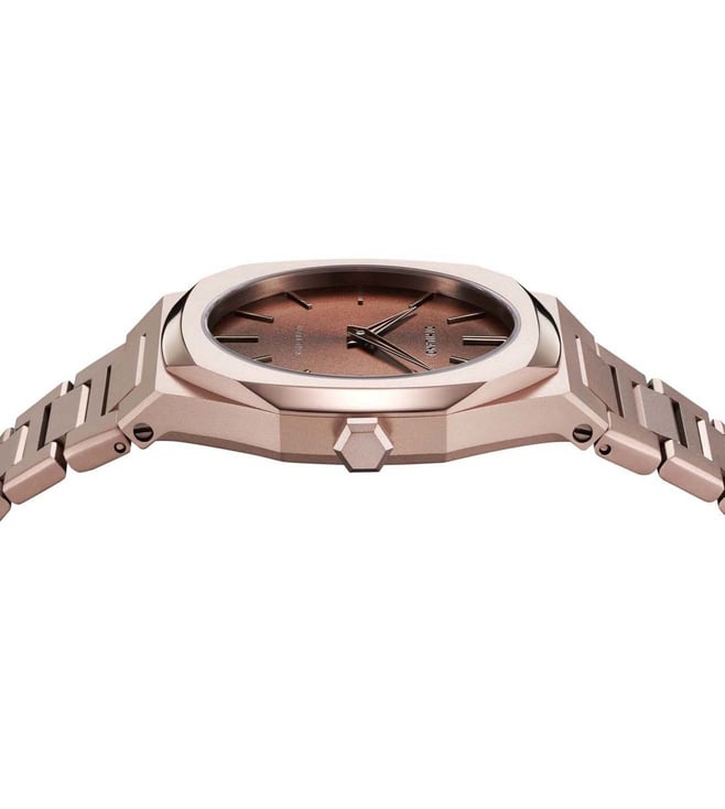 A perfect fusion of style and functionality, this analog watch by D1 Milano is sure to make a style statement. It has a 34 mm dial that is secured with sapphire glass. This watch vaunts a plain 2-hand functionality. It further works on a quartz mechanism and is water resistant up to 50 m.