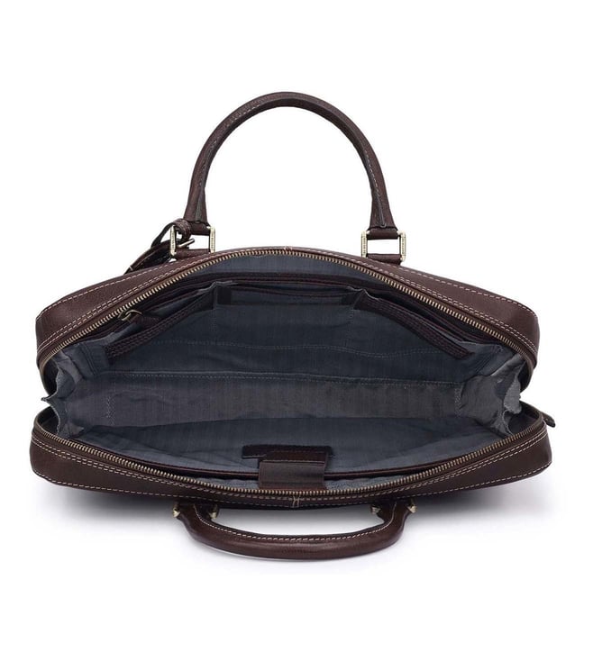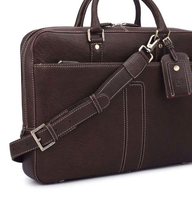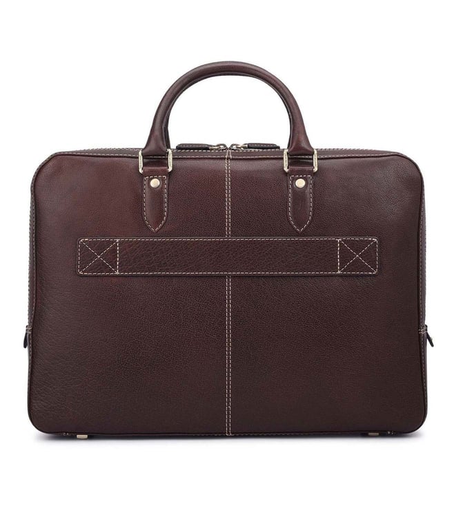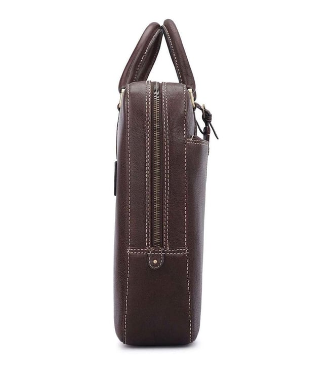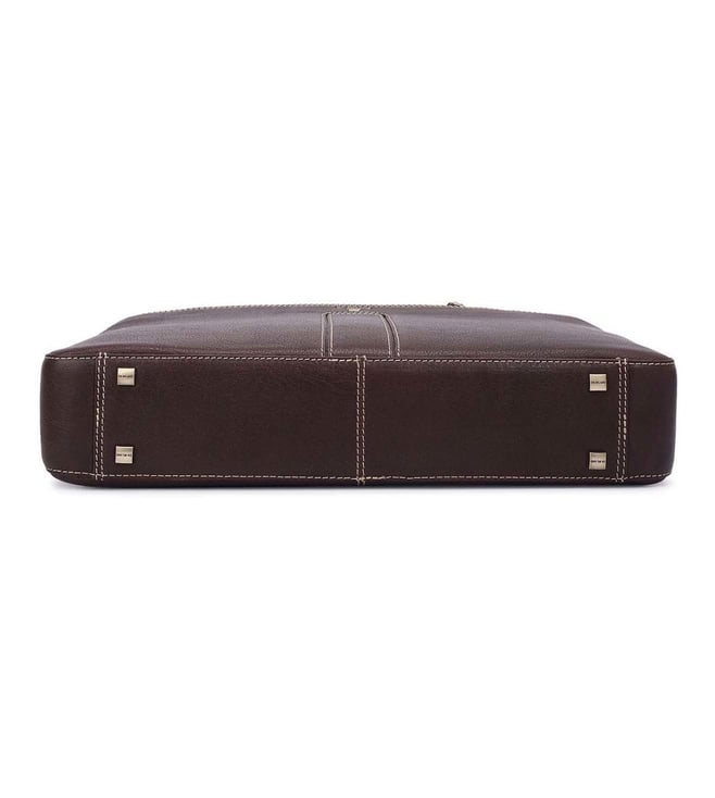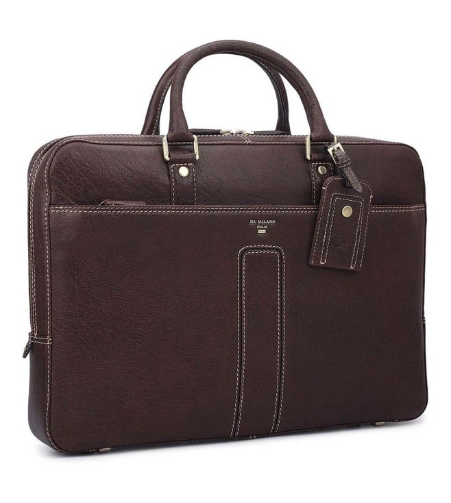 Da Milano Brown Textured Medium Leather Laptop Bag