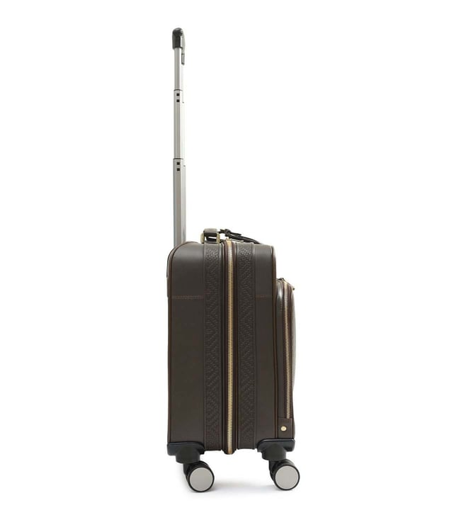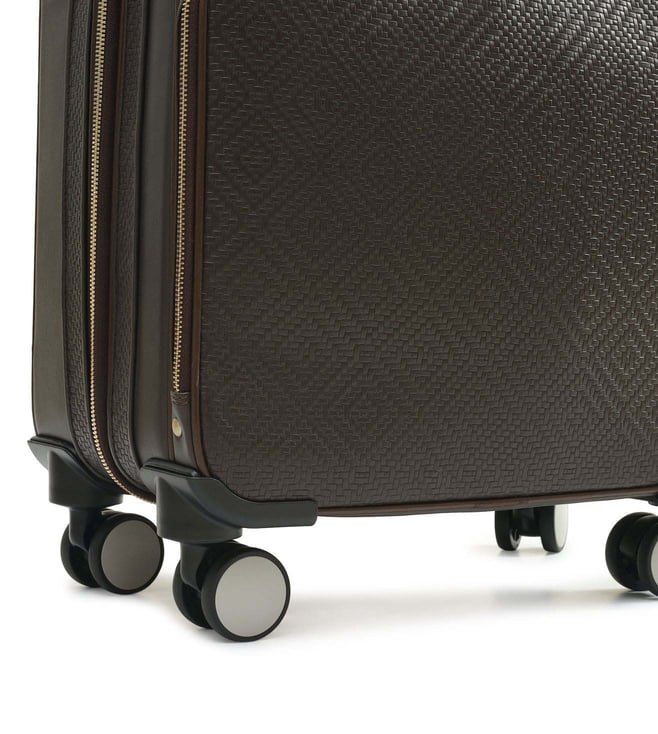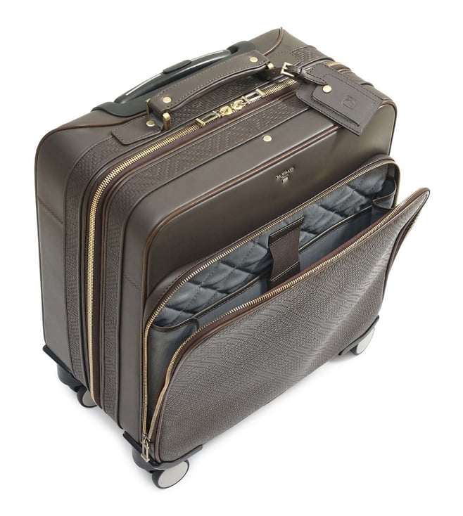 Travel light yet stylish with Da Milano¿s overnighter trolley, crafted from durable polycarbonate and accented with genuine leather. Compact and cabin-friendly, it features smooth 360 degree spinner wheels and a smartly designed interior, making it perfect for overnight trips and short getaways.