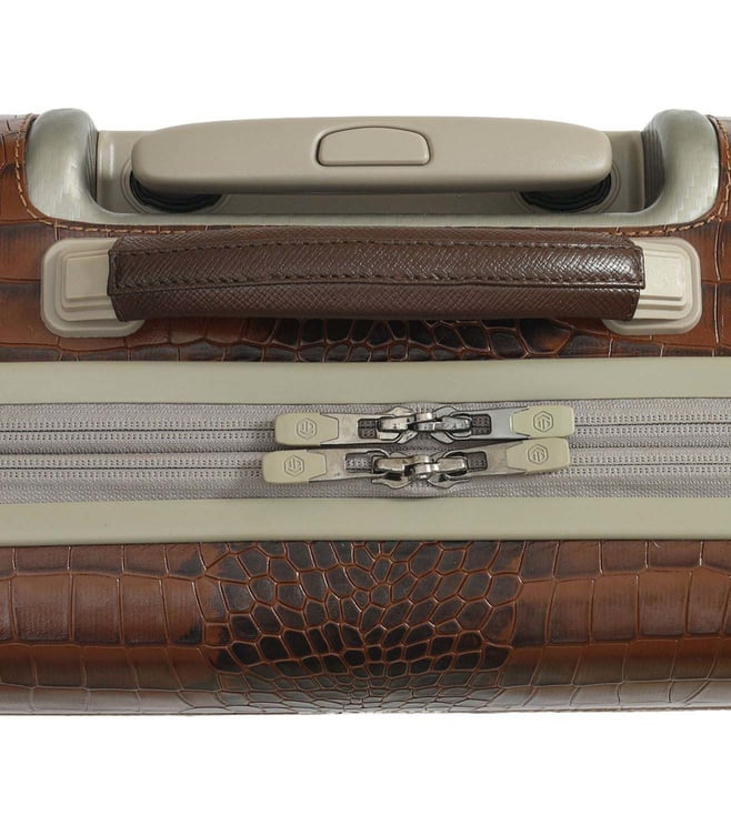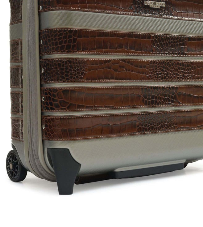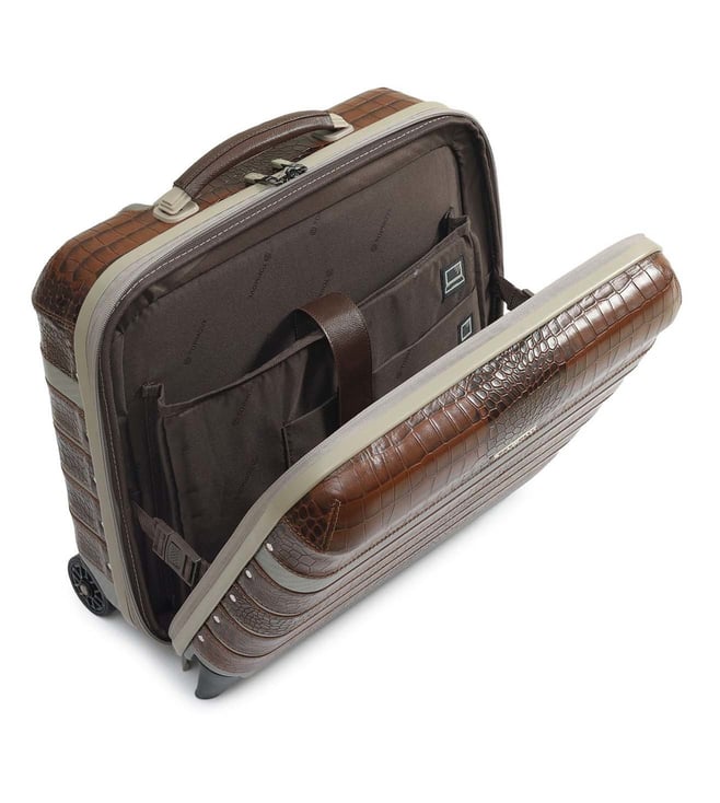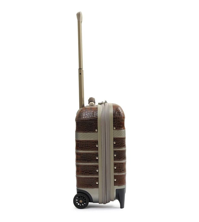 Travel light yet stylish with Da Milano¿s overnighter trolley, crafted from durable polycarbonate and accented with genuine leather. Compact and cabin-friendly, it features smooth 360 degree spinner wheels and a smartly designed interior, making it perfect for overnight trips and short getaways.