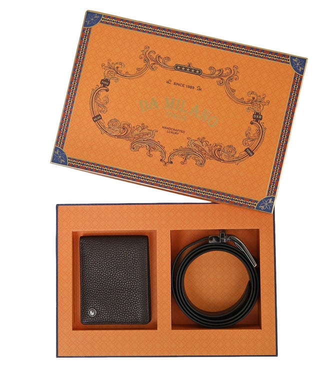 Da Milano Leather Men Wallet & Belt Gift Set - Brown