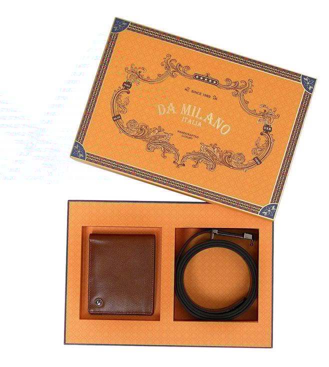 Da Milano Leather Men Wallet & Belt Gift Set - Brown